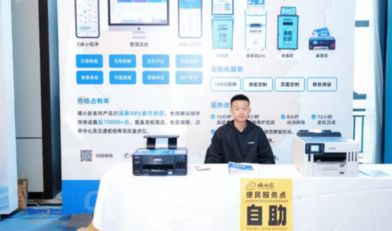喵匠云印面向全国开放代理商与加盟商合作,提供从设备、技术、供应链到品牌宣传、运营培训、售后跟踪的八大支持体系,致力于与合作伙伴共同成长,共享市场红利。