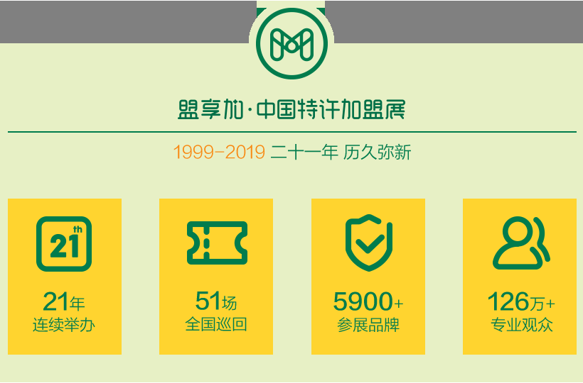 盟享加中国特许加盟展历经20年市场沉浮,凭借专业的展会运作和精准高成效的需求对接,成为国内办展年限最长的特许加盟展览会,也成为全球同类展会中展览规模最大的特许加盟展览。2018年将先后在武汉、北京、广州、上海、南京五个城市举办,总展出面积将达到100000平米,预计参展品牌超过1500个,参观观众超过150000人次。