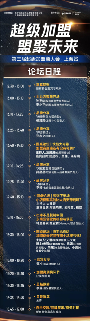 品牌创始人、超级加盟商、商业地产、行业大咖同台,打通上游品牌—中端加盟—下游渠道全链路。