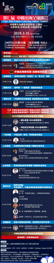 峰会现场将发布《中餐出海全球化白皮书》,系统梳理中餐出海趋势、标杆案例与实战方法论,为行业提供决策参考。