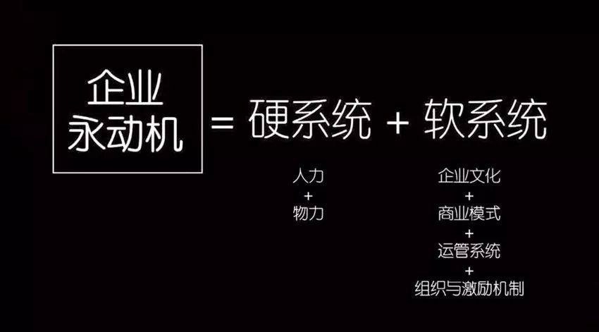 势是目标趋向,法是工作原理,术是企业体系。势+术=意愿,法+术=能力,有意愿有能力就是人才。如果说人力和物力是企业的硬系统,那么企业文化、商业模式、运管系统、组织与激励机制这些冰山下的部分则是企业的软系统,企业永动机就是硬系统+软系统。没有这些底层系统的运行,做大做强的梦想永远都不可能实现。