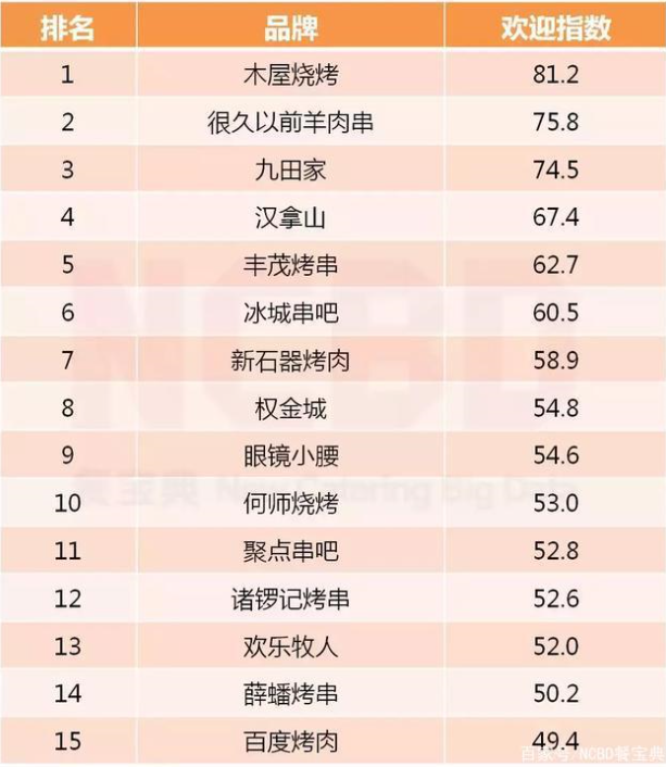 和餐饮的其他品类一样,烧烤早晚也会迎来洗牌期,那些没有特色、只知道跟风的烧烤店将不可避免地失去市场。今年登上“欢迎榜”的这15个品牌,尽管各自有些特色,但也并不就是说做得有多好,整个烧烤品类至今依然没有哪个品牌特别拔尖,整体依然有较大的提升空间。
