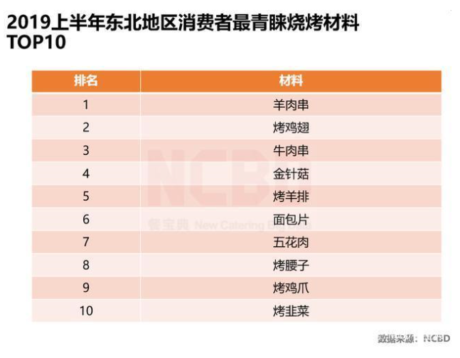 与其他餐饮业态相比,烧烤行业门槛低、模式易复制的特点,使其更容易同质化。以食材为例,据NCBD(餐宝典)统计,在今年上半年,除西南地区外,全国各地烧烤店卖得最多的三样菜品中,都少不了羊肉串和烤鸡翅。