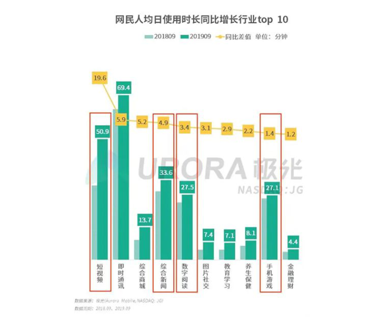 根据极光大数据对“中国网民人均日使用时长”的统计分析: