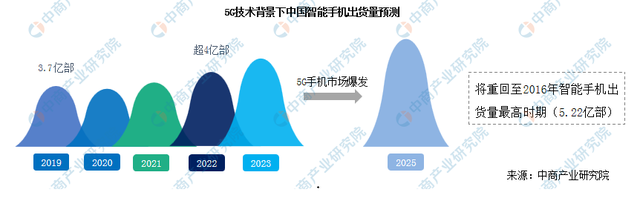 据悉,2019年有超30款5G移动终端上市,但短期内不会大范围普及。因此,近几年,智能手机出货量将不会大幅增长。2019年智能手机出货量继续下跌,手机产销量持续下滑,新上市机型数量下降。据了解,2019年中国智能手机市场出货量为3.69亿台,而2018年我国智能手机出货量为3.96亿台,同比减少约2700万台。按照智能手机2-3年换机频率再看,预计跌幅或收缩,未来几年随着5G手机市场爆发,2025年全国智能手机出货量或将达到2016年水平。