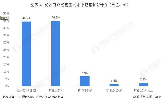 尽管面对激烈的餐饮行业的竞争以及餐饮商户日益增多的市场行情,大部分餐饮商户仍然对未来的发展持看好态度。主要是因为餐饮是满足人民群众生活的刚需,与人民群众的紧密连接。据美团研究院数据,55.5%的餐饮商户经营者表示有扩张计划,其中,计划扩张1-2家店的占比为44.9%,计划扩张3-5家店的占比为6.9%。