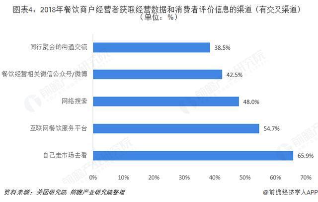 伴随着经济和社会的发展,国内消费者需要多样化、更加优质的服务,这就给服务线上业发展带来更多机遇。在移动互联网时代,餐饮商户经营者对店铺的经营信息以及消费者评价尤为关注,依据数据对经营状况进行分析并找出经营中存在的问题,达到及时调整和优化经营策略的目的。从商户经营者获取数据的主要渠道来看,互联网餐饮服务平台的占比为54.7%,成为众多餐饮商户经营者获取相关数据信息的主要来源。