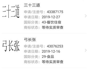 1、四个月前就已注册“弓长张”、“三十三道”两个商标