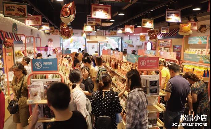 松鼠小店之所以称之为小店,在于其门店面积多在50~100㎡。虽然门店面积不大,但营收可不小。常规的一家松鼠小店,平常月份的月流水基本在10~30万不等,而在特殊节点(端午、中秋、年货节等),可创造高达200万的营收佳绩。