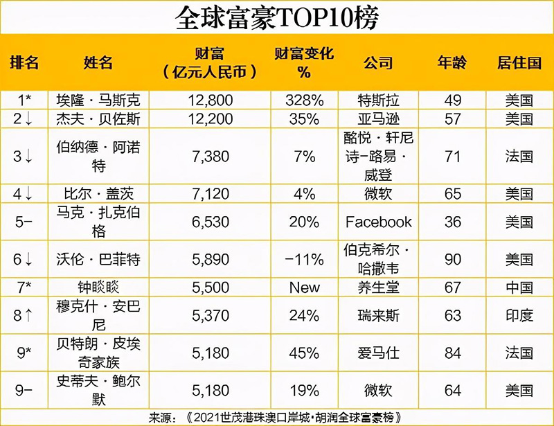 全国服务热线:400-806-2866日前,胡润研究院发布《2021胡润全球富豪榜》。上榜企业家财富计算截止日期为2021年1月15日。