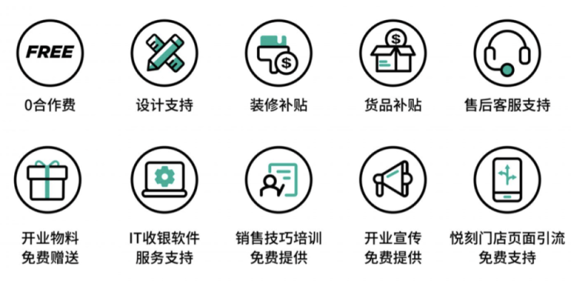 悦刻线下门店包括标准店、明星店、悦刻小铺和迷你店,其中标准店、明星店店铺面积要求大于等于15m²,悦刻小铺面积要求5m²,迷你店面积要求5-15m²。开设店铺无需合作费,公司还将提供设计支持、装修补贴、货品补贴、IT收银软件支持等多项服务。