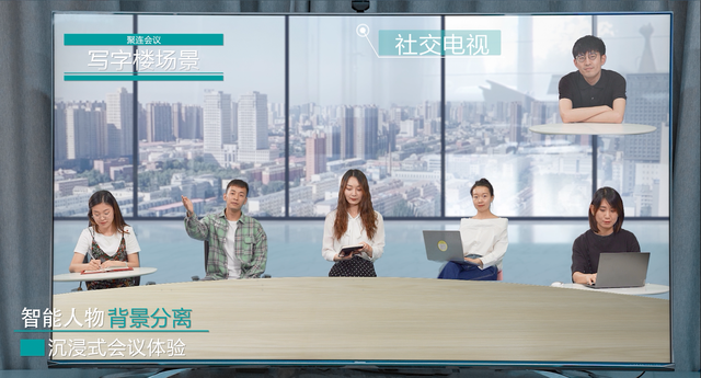 据了解,虚拟会议功能是依据聚好看科技的AI算法,将参与者人像画面与背景进行分割,并按照一定规则显示在虚拟会议室中。目前已经具备写字楼场景、图书馆场景、吧台场景、客厅场景等虚拟空间,在不同的场景下,带来不同的沉浸式体验。