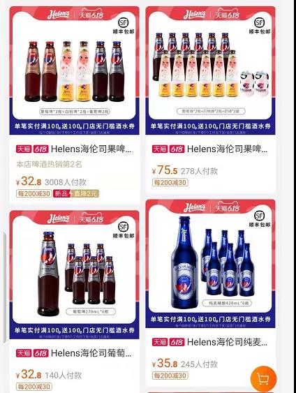 海伦司自有酒饮的销售额不仅来自酒馆,还来自其线上电商旗舰店。海伦司在京东和天猫均设有旗舰店,其果啤类产品在线上备受年轻人的欢迎。