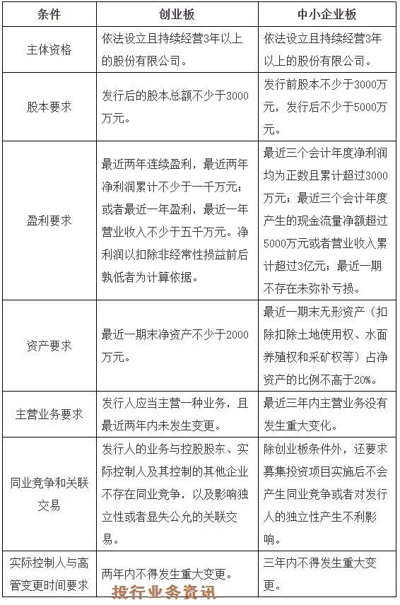 51.创业板与中小企业板在发行条件上有何具体区别?