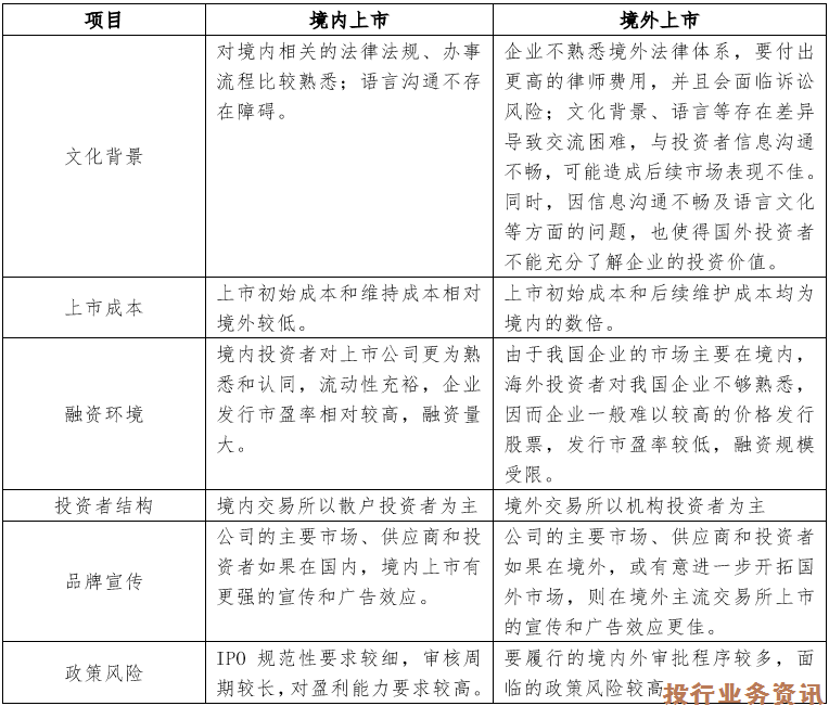 企业选择在境内或者境外上市,应视各自具体情况而定。一般来说,企业在境内或者境外上市主要存在如下差异: