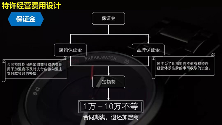 品牌保证金盟主为了让加盟商不做有损特许经营体系品牌的事而收取的资金。