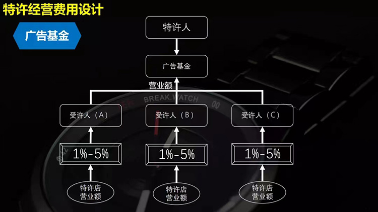 当企业每年用于品牌的广告费用很高,那么可以设计广告基金,因为连锁企业投资广告,所有的门店都是收益的,这就是连锁的魅力。