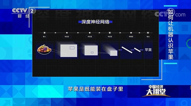 “机器如何认识一个苹果?”王海峰以此为引,从小朋友学习认识“苹果”讲起,通过对比人脑与人工智能“思考”时的异同,帮助观众更好地理解人工智能和深度学习技术。人工神经网络是借鉴人脑神经网络的工作机理设计的,现在可以达到几百层、上千层,被称为“深度神经网络”。这么多层的神经网络,让机器可以从海量的数据中,学习到更复杂、更丰富的规律与知识,甚至能学习到人类还没有发现的知识,从而可以轻松识别各种各样的物体,也能发现物体之间的关系,完成各种复杂的计算。基于深度神经网络,从大规模数据中学习的过程,就是“深度学习”。