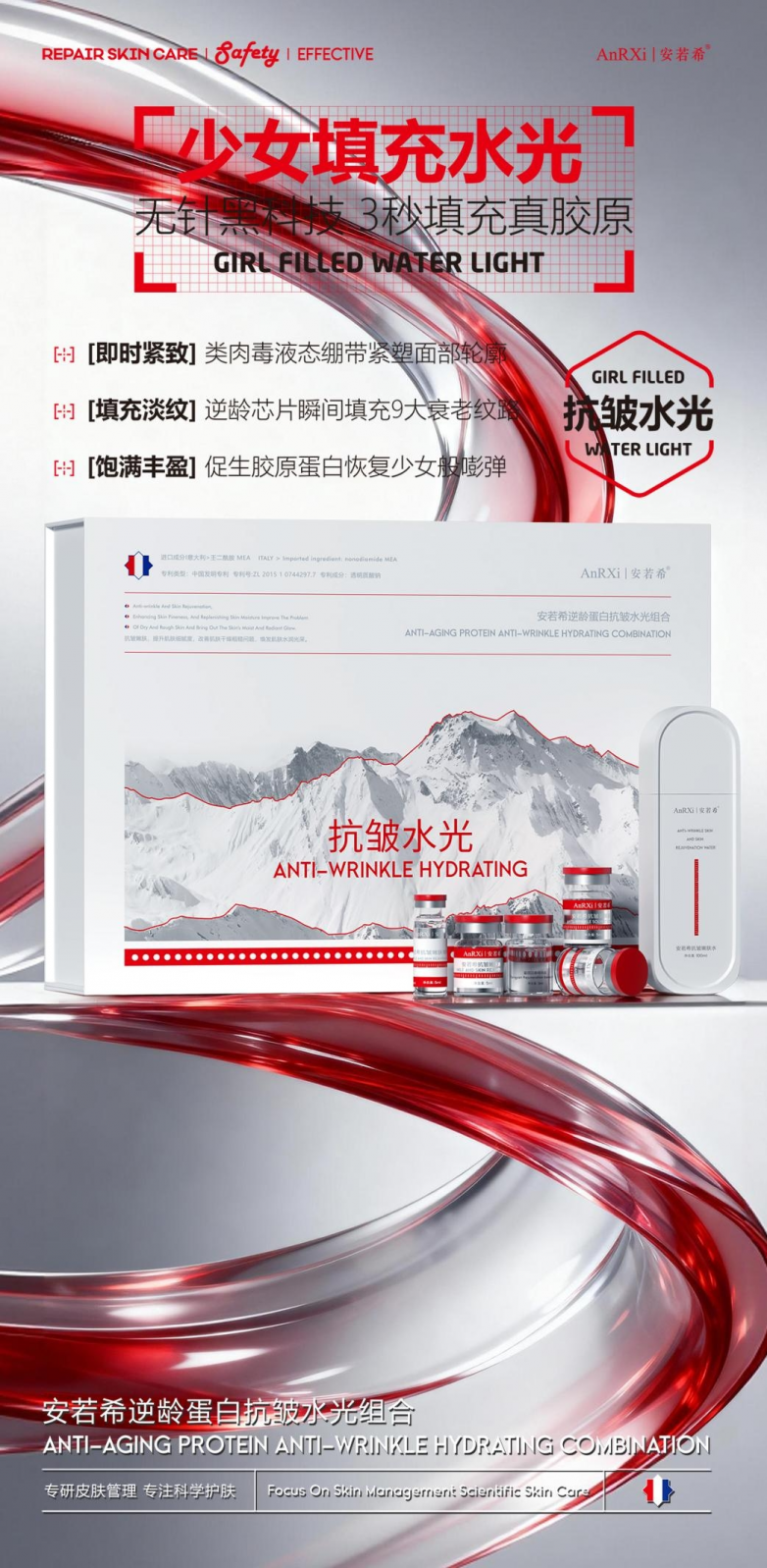 法国安若希依托中法双研发中心的技术优势,持续深耕功效护肤领域,本次展会推出多款新品与升级单品,进一步完善院线护肤产品体系。