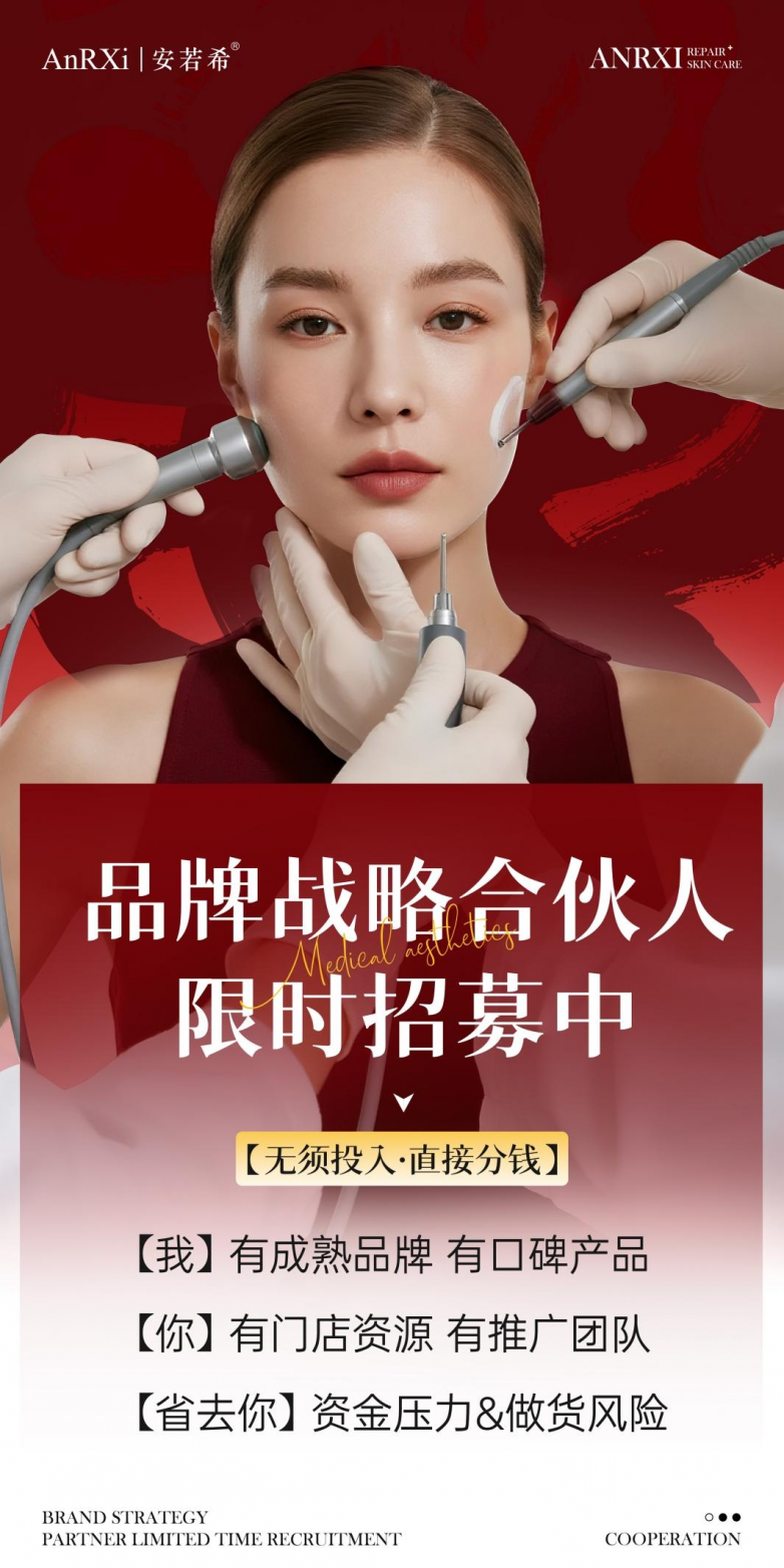安若希将为合作商提供全方位扶持,涵盖产品培训、技术指导、营销推广等多维度支持,助力合作门店快速建立标准化运营体系,提升市场竞争力。未来,安若希将持续以科技赋能产品,以品质护航肌肤,致力于为中国女性提供安全、有效、专业、科学的医学护肤品,推动美业健康可持续发展。