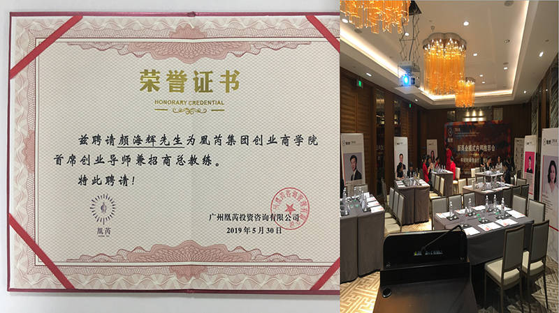 颜海辉老师受聘为凰芮集团魅密科技快捷美疗的招商总教练及首席创业导师