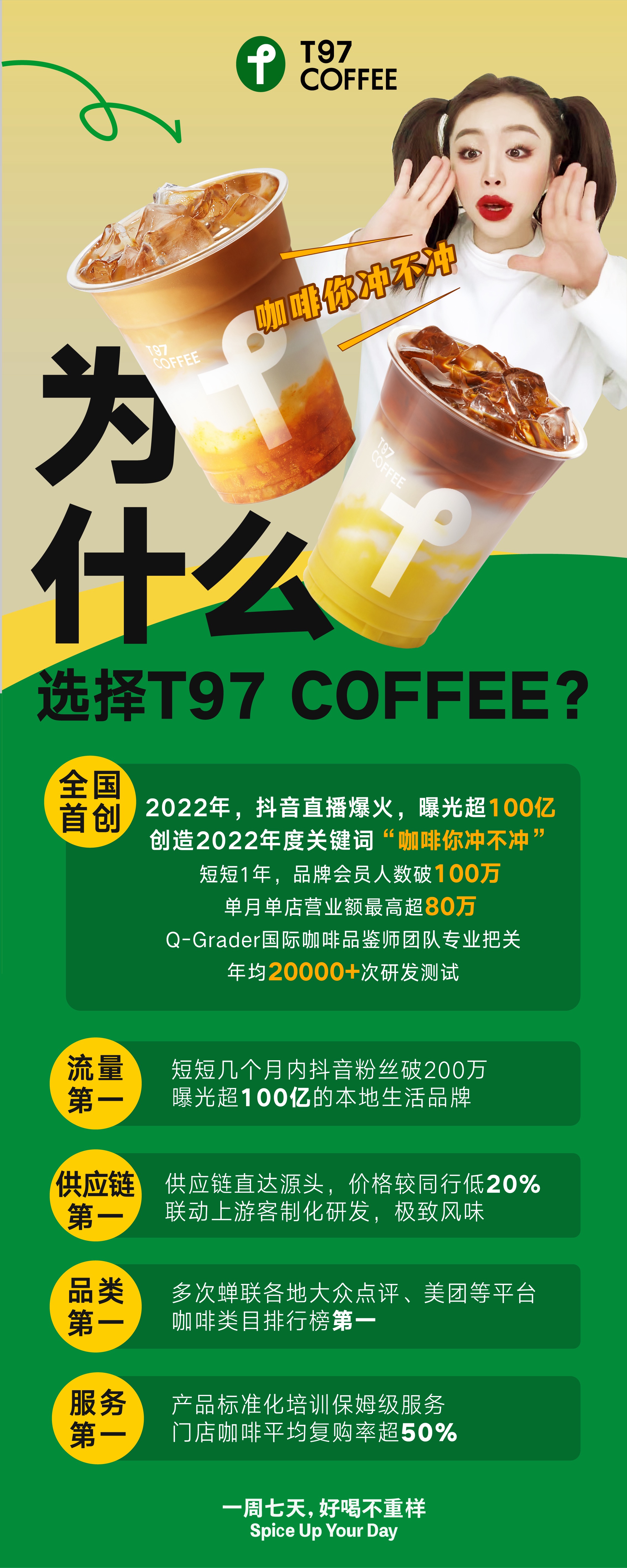 一周七天,好喝不重样。T97希望每个人都能通过无限的咖啡创意,为生活注入无限灵感。