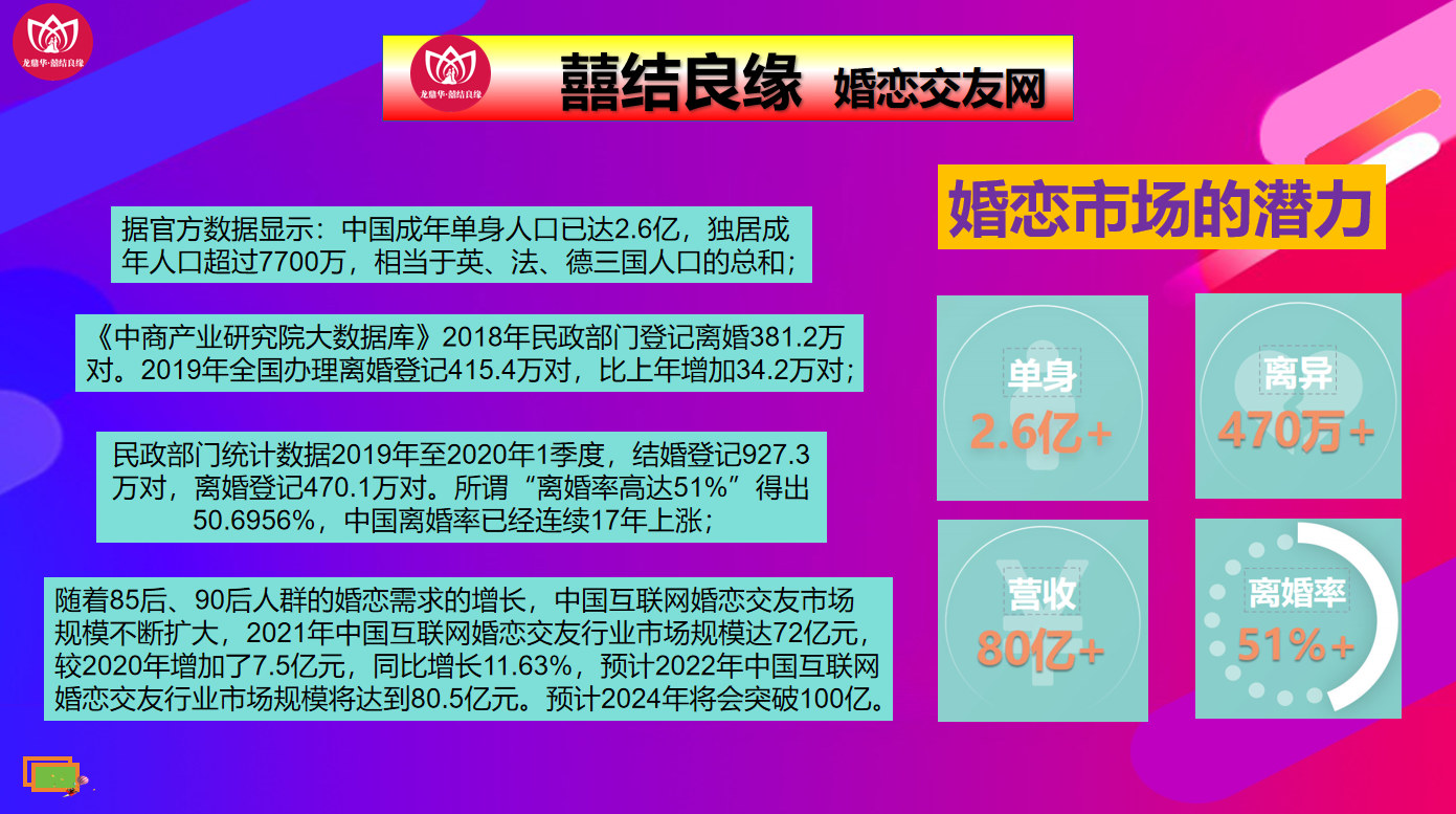 ❹ 解决人口出生率下降的痛点,完成时代召唤的使命!我国出生人口从2015年的1655万,2020年的1200万,到去年2023年出生人口仅为902万人。人口自然增长率为 -1.48‰。人口出生率的极速下降导致加速了我国人口老龄化问题,国家开放二胎三胎就是迫在眉睫的要解决人口出生率问题,提高结婚率就是提高人口出生率的必然途径,此乃符合国策,做有社会使命的企业!让企业既有经济价值又有社会价值!