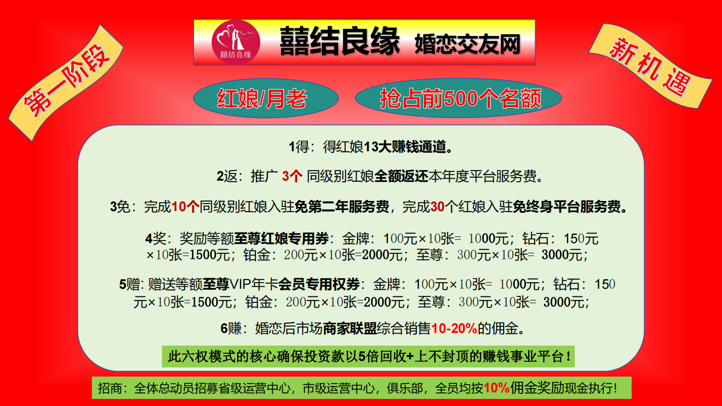 ❷而且牵手成功囍结良缘还奖励会员2-3万的结婚礼金(现金)(我们找到了新的利润增长点是前端的10倍!)