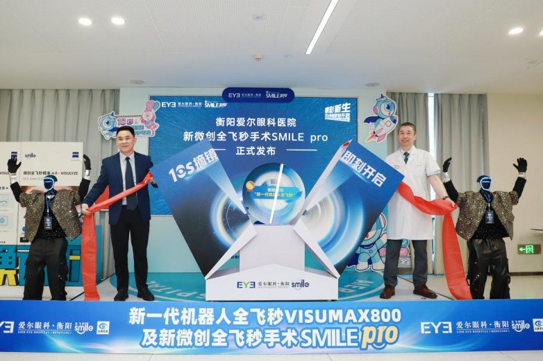 4月25日,“新一代机器人全飞秒VISUMAX 800及新微创手术SMILE pro”在衡阳爱尔眼科医院震撼发布。此次发布仪式邀请眼科专家、媒体记者及患者朋友们,沉浸式感受“智”造力量,共同见证近视矫正技术迈向“超快、智能、更安全”的新纪元。