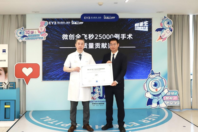 衡阳爱尔屈光手术专科团队由李建平主任领衔,汇聚了多名全飞秒手术认证医生,以“全程定制”为核心理念,从精准高效的术前检查,个性化手术方案定制,到术后追踪管理,形成闭环服务链,已累计完成微创全飞秒手术超25000例。为表彰医院在全飞秒领域作出的贡献,蔡司公司特别授予衡阳爱尔“新一代机器人全飞秒VISUMAX 800及新微创全飞秒手术SMILE pro临床合作单位”和“微创全飞秒25000例手术质量贡献奖”两项荣誉。