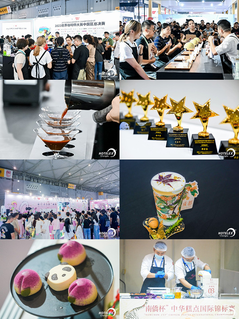 本届成都展同期引入了世界咖啡师大赛中国区总决赛、上海国际潮流饮品创意制作大赛全国总决赛、2023世界咖啡烘焙大赛中国区选拔赛成都分区赛和“南僑杯”中华糕点国际锦标赛(西南区分站赛)等四大赛事,包括咖啡、潮饮、中式烘焙等年轻消费者喜闻乐见的细分品类,100多位全国各地来至相关领域的高手,同台竞技,争相逐妍,在一展胸中所学的同时,也为现场观众带来视觉与味觉相结合的巅峰对决。
